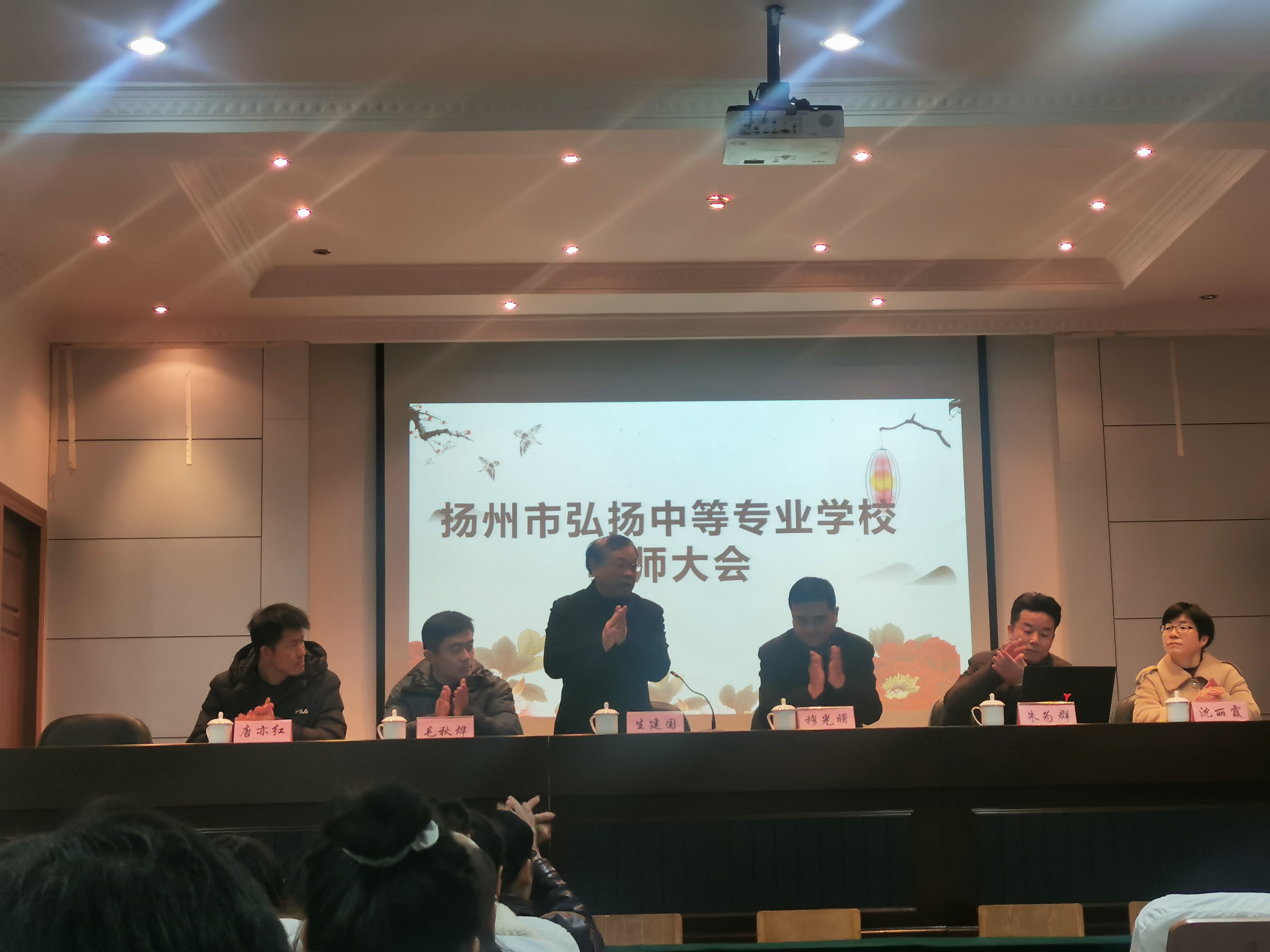 为全面贯彻落实全市“高中教育工作会议”精神,为达成学校的高质量发展,进一步提升教师教育教学能力,扬州市弘扬中等专业学校于2020年12月3日晚组织了以“凝心聚力,真抓实干,为建设高质量发展的弘扬中专而努力”为主题的教师大会。