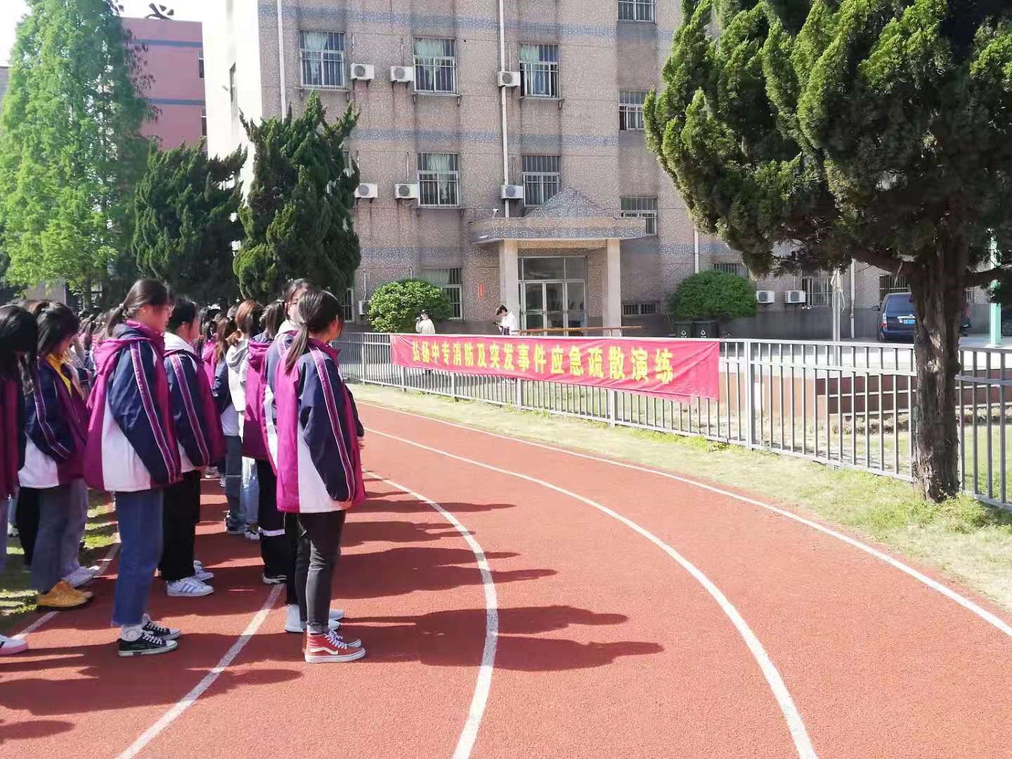 等相关规定,认真制定了2021年度消防及突发事件应急演练方案,于2021年4月19日上午9:20举行了<弘扬中专消防及突发事件应急疏散演练>活动,进一步提高了全体师生安全意识,提高了自救和抗击突发灾害的应变能力,增强了教师快速组织学生有序、安全撤离教学楼和学生不惊恐不混乱自我保护、安全逃生的能力。