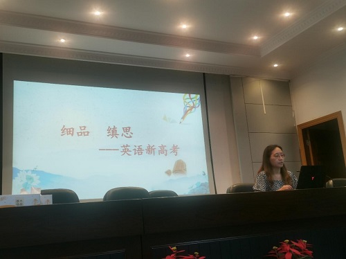 语文组翁晶晶主任以“立足新高考 寻求新突破”为主题,提出了从“研究考试大纲,落实课程标准”“紧扣教材,建立知识系统”“营造真实情境,进行深度学习”“面向生活、名著、社会”这四个层面寻求突破,发掘并培养学生的语文核心素养。