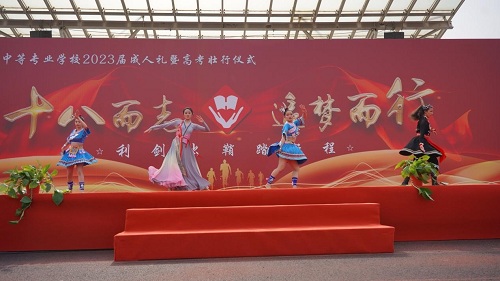 青春正好,眼看策马扬鞭奋蹄前;风华正茂,尽是乘风破浪扬帆起。2023年4月18日下午,扬州市弘扬中等专业学校隆重举行“十八而志,追梦而行——利剑出鞘踏征程”成人礼暨高考壮行仪式。学校校长生建国、监事长虞同和、副校长朱为群、毛秋烨、唐亦红、沈丽霞,高三全体教师共同见证了2023届高三学子步入成人行列的神圣时刻。学生家长代表及扬州新闻媒体应邀前来观礼。