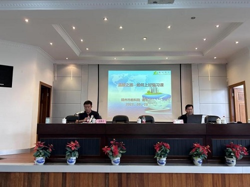 “露蝉声渐咽,秋日景初微”。处暑到来,暑气散去,凉意渐起,但弘扬教师们的学习热情丝毫没有减退。8月28日,扬州市教育科学研究院中小学英语教研员、江苏省高中英语特级教师谢平来我校做了题为《温故之旅——如何上好复习课》的专题讲座,讲座由毛秋烨副校长主持。