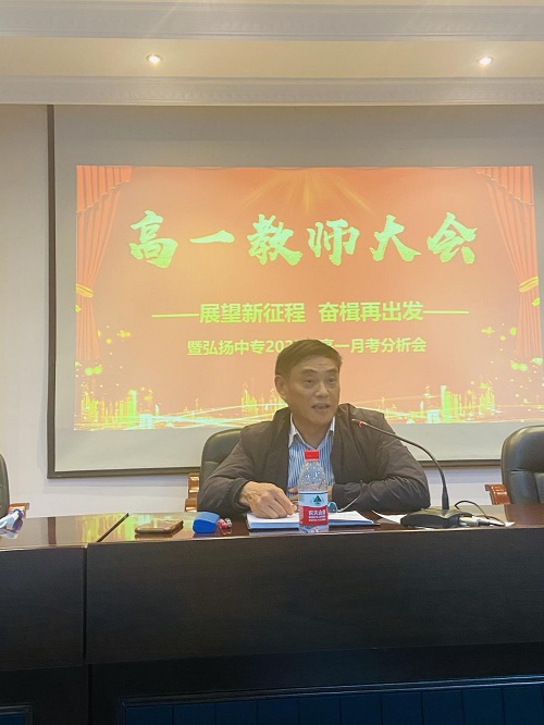 为全面总结高一年级第一次月考考试情况,深入剖析学生的学习现状,找出问题,制定有效的解决措施,提高教学质量。2023年10月21日下午,学校高一年级组召开第一次月考成绩分析会。学校校长陈仕龙、分管校长毛秋烨、督导专家谢平出席本次会议,高一年级全体科任教师参加,会议由年级组长陈宏主任主持。
