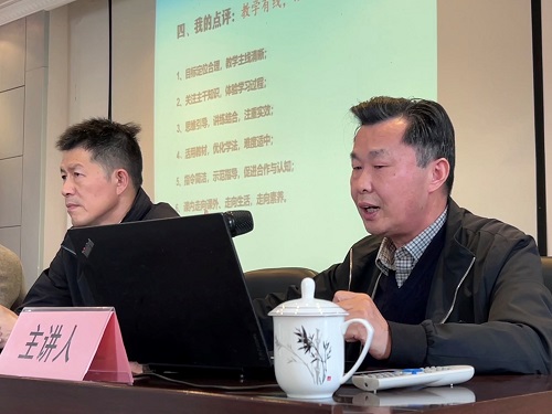 随后,督导专家谢平教授点评样课活动。谢教授回顾了“三单一案”的构成和理论构建——“生本理念”,点评此次活动教学有线,活动有序,架构有模。他特别指出,“三单一案”的设计是从学习者角度设计,要注重课上导学功能,要关注每节课的教学容量和难度,基于学情、学科特点和教学目标,容量不宜过大,难度不宜过深,实现课堂教学“堂堂清”。